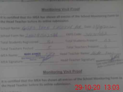 | EMIS Code: 36130442 | Name of School: GGPS JHOK LASHKAR PUR | |||