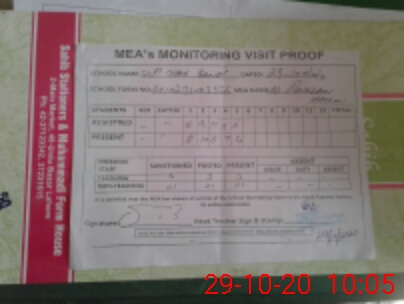 | Attendance Register | Head Teacher | MEA with School | Visit Proof |
