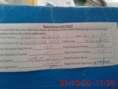 | Attendance Register | Head Teacher | MEA with School | Visit Proof |