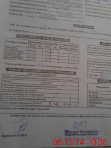 | Certified that this School was Inspected by the Undersigned MEA/DMO Today and the Information Stated Above is as Per Record. | |||||