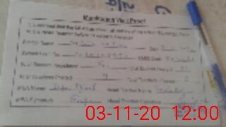 | Monitoring Date: 03-11-2020 | Start Time: 03-11-2020 11:48 AM | End Time: 03-11-2020 12:01 PM | Name of MEA: Za**** Iq**** BN**** | |