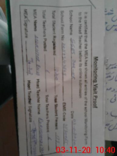 | Certified that this School was Inspected by the Undersigned MEA/DMO Today and the Information Stated Above is as Per Record. | |||||
