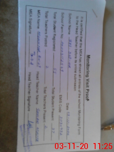| Attendance Register | Head Teacher | MEA with School | Visit Proof |