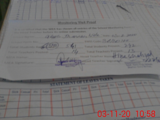 | Attendance Register | Head Teacher | MEA with School | Visit Proof |