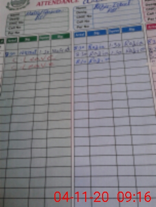 | CNIC | Full Name | Designation | R/C | Absence During Last Calender Month |