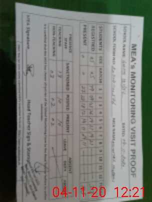 | Attendance Register | Head Teacher | MEA with School | Visit Proof |