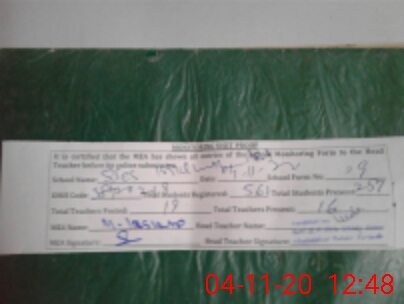 | Attendance Register | Head Teacher | MEA with School | Visit Proof |