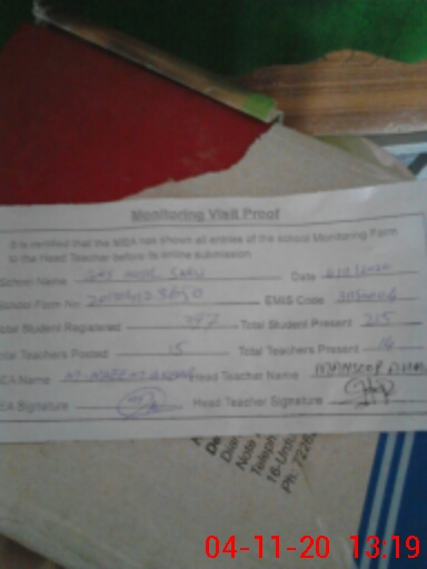 | EMIS Code: 31150004 | Name of School: GHS HASIL SARU | |||