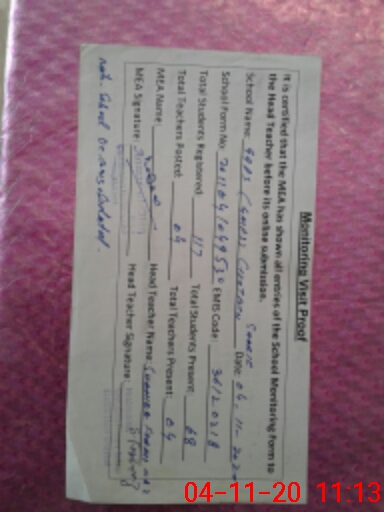 | Attendance Register | Head Teacher | MEA with School | Visit Proof |