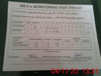 | Attendance Register | Head Teacher | MEA with School | Visit Proof |