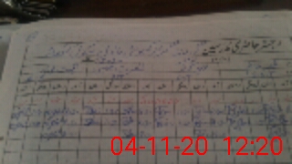 | CNIC | Full Name | Designation | R/C | Absence During Last Calender Month |