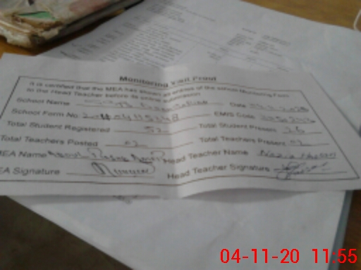 | Attendance Register | Head Teacher | MEA with School | Visit Proof |