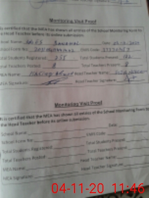 | Attendance Register | Head Teacher | MEA with School | Visit Proof |
