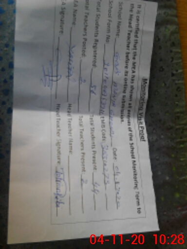 | Attendance Register | Head Teacher | MEA with School | Visit Proof |