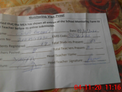 | Attendance Register | Head Teacher | MEA with School | Visit Proof |