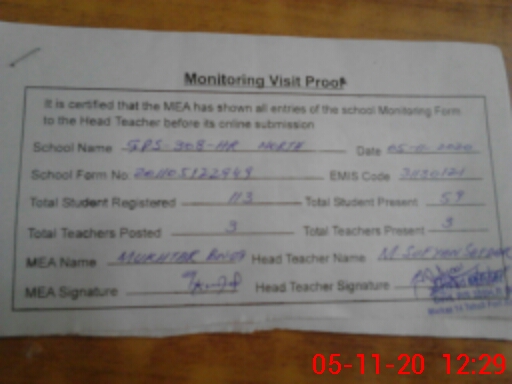 | EMIS Code: 31130121 | Name of School: GPS CHAK 308/HR NORTH | |||