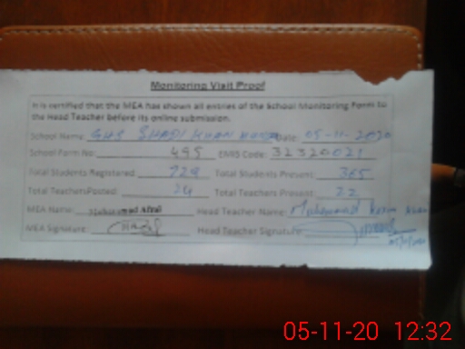 | EMIS Code: 32320021 | Name of School: GHS SHADI KHAN MUNDA | |||