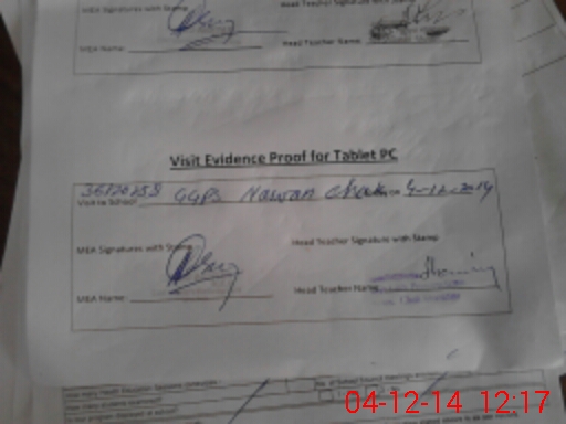| Attendance Register | Head Teacher | MEA with School | Visit Proof |