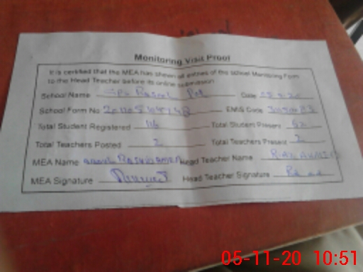 | Attendance Register | Head Teacher | MEA with School | Visit Proof |