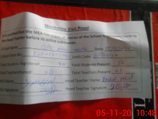| Certified that this School was Inspected by the Undersigned MEA/DMO Today and the Information Stated Above is as Per Record. | |||||