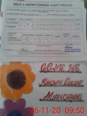 | EMIS Code: 36430076 | Name of School: GGHS MC RAILWAY COLONY, MIAN CHANNU | |||