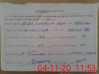 | Monitoring Date: 04-11-2020 | Start Time: 04-11-2020 11:15 AM | End Time: 04-11-2020 11:54 AM | Name of MEA: S-**** MU**** SA**** | |