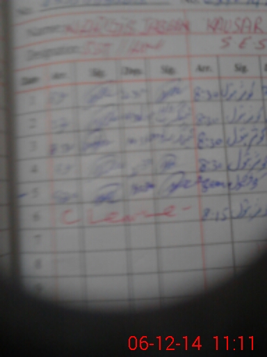 | CNIC | Full Name | Designation | R/C | Absence During Last Calender Month |