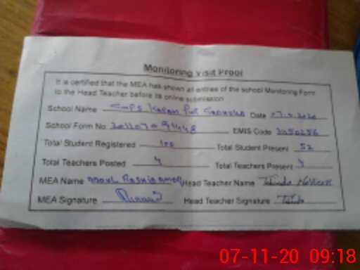| Attendance Register | Head Teacher | MEA with School | Visit Proof |