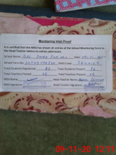 | EMIS Code: 36120129 | Name of School: GPS DAIRA PUR NO. 2 SHUJA ABAD | |||