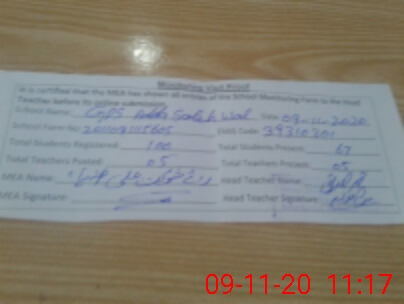 | Attendance Register | Head Teacher | MEA with School | Visit Proof |