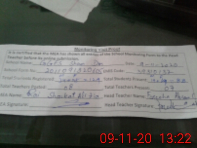| Certified that this School was Inspected by the Undersigned MEA/DMO Today and the Information Stated Above is as Per Record. | |||||