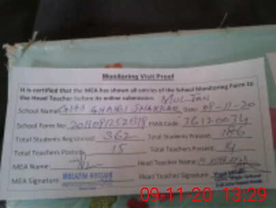 | Attendance Register | Head Teacher | MEA with School | Visit Proof |