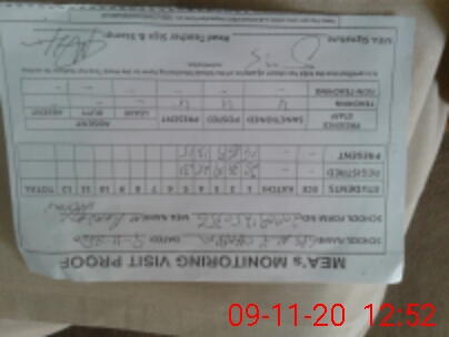 | Monitoring Date: 09-11-2020 | Start Time: 09-11-2020 12:03 PM | End Time: 09-11-2020 12:52 PM | Name of MEA: Ra**** Ha**** | |