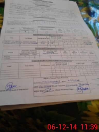 | Attendance Register | Head Teacher | MEA with School | Visit Proof |