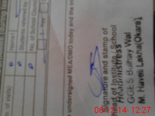 | Certified that this School was Inspected by the Undersigned MEA/DMO Today and the Information Stated Above is as Per Record. | |||||