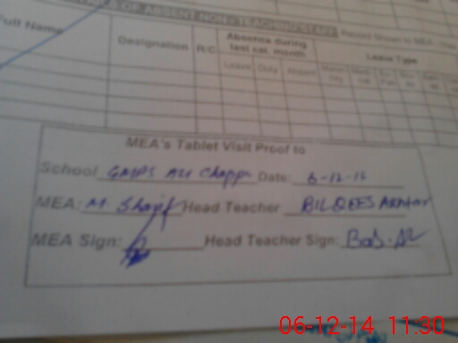 | Attendance Register | Head Teacher | MEA with School | Visit Proof |