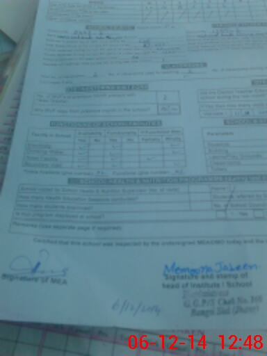 | Certified that this School was Inspected by the Undersigned MEA/DMO Today and the Information Stated Above is as Per Record. | |||||