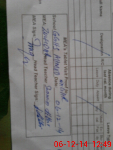 | Attendance Register | Head Teacher | MEA with School | Visit Proof |