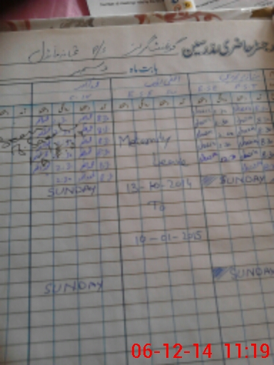 | CNIC | Full Name | Designation | R/C | Absence During Last Calender Month |