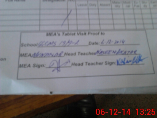 | Attendance Register | Head Teacher | MEA with School | Visit Proof |