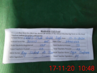 | Attendance Register | Head Teacher | MEA with School | Visit Proof |