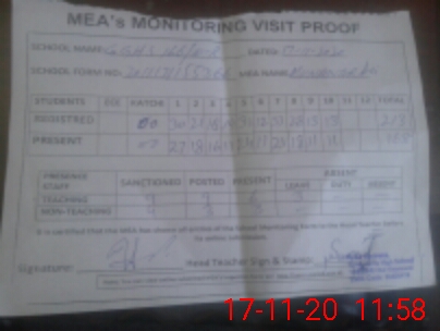 | Attendance Register | Head Teacher | MEA with School | Visit Proof |