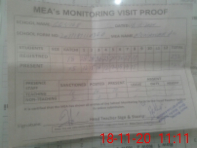 | Attendance Register | Head Teacher | MEA with School | Visit Proof |
