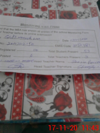 | Attendance Register | Head Teacher | MEA with School | Visit Proof |