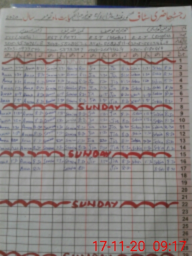 | CNIC | Full Name | Designation | R/C | Absence During Last Calender Month |