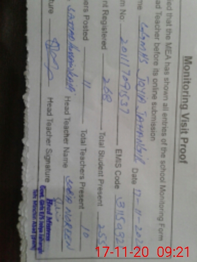 | EMIS Code: 31150321 | Name of School: GMHS JOYIA JAHANGIR | |||