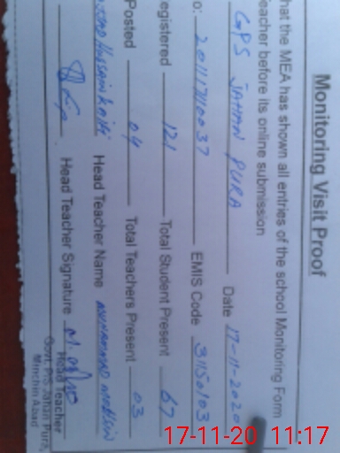| EMIS Code: 31150103 | Name of School: GPS JAHAN PURA | |||