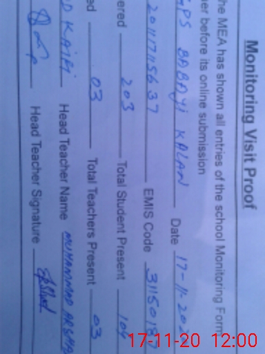 | EMIS Code: 31150187 | Name of School: GPS BABAYI KALAN | |||