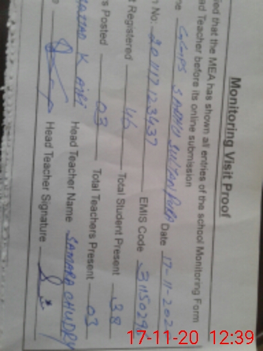 | EMIS Code: 31150296 | Name of School: GGPS SADHU SULTAN PURA | |||
