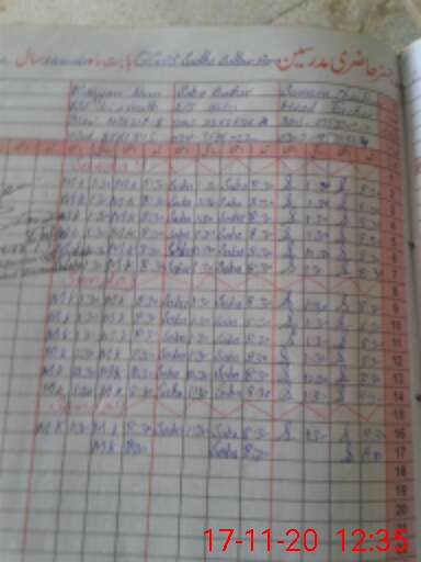 | CNIC | Full Name | Designation | R/C | Absence During Last Calender Month |